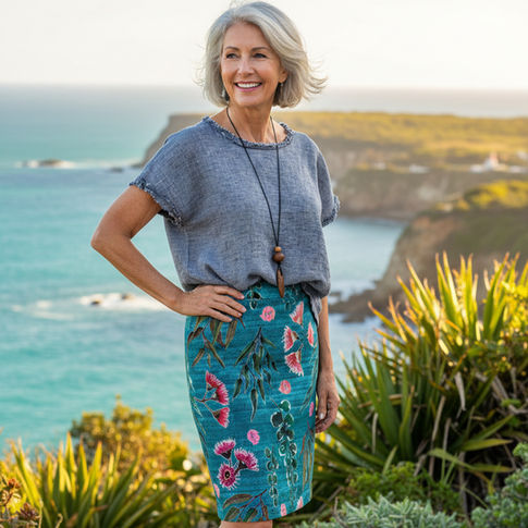 Art for everyday wear. Soft linen to look and feel comfortable, cool and gorgeous in. Your go-to top that goes beautifully with pants and skirts alike featuring art by Jules Hunt and daughter Rosabella.